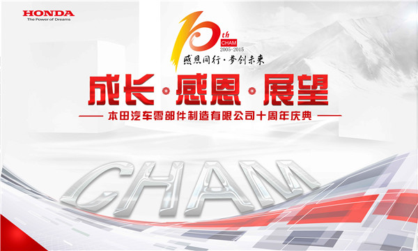 2015年9月19日,本田汽车零部件制造有限公司在文体活动中心隆重举行成立10周年庆典。在全场员工以及来宾的倒数声中,主题为:成长、感恩、展望的庆典仪式正式拉开帷幕。